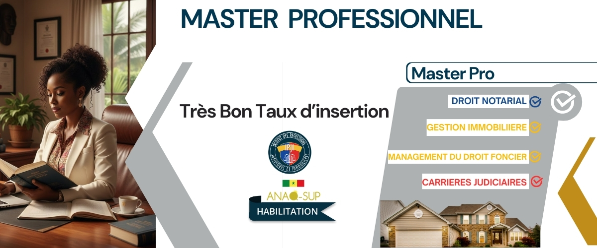 1er Institut au Sénégal et en Afrique de l'Ouest à offrir des formations exclusivement tournées vers les Métiers du Notariat, de l'Immobilier et des Carrières Judiciaires